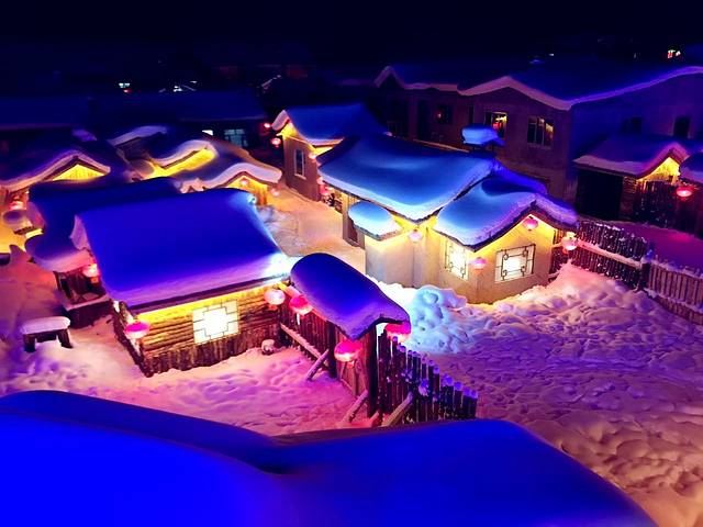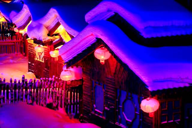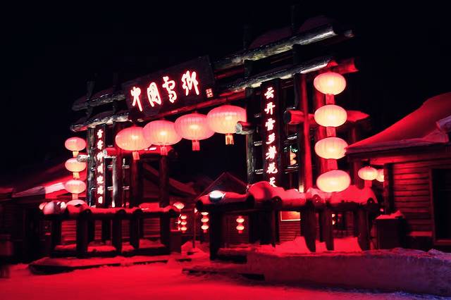 入了夜,雪乡仿佛开启了魔法空间,七彩的灯光更是把整个冰雪村庄照的如梦似幻。听说梦幻家园的夜景与白天是不同的,忍不住又去了一趟,果然仿佛误入梦游仙境,昏黄与冷蓝的色调互相碰撞,让人直想接一句“见证奇迹的时刻到了!”