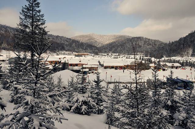 想起几年前去过的瑞士雪山,觉得那个地方几乎已经揽尽了冰天雪地的美,恐怕再无法遇到更美的冰雪景致了, 这趟雪乡之行却切切实实地给了我惊喜。远望雪山,同样的壮美辽阔,然而走进雪乡,发现这里还更多一种格外有人情味的美,这里的冰雪似乎更加容易亲近。铺在山上的积雪并非看起来那么遥远,我知道不久我便会登上这座雪山,翻越她进入听说好像童话世界的雪乡。