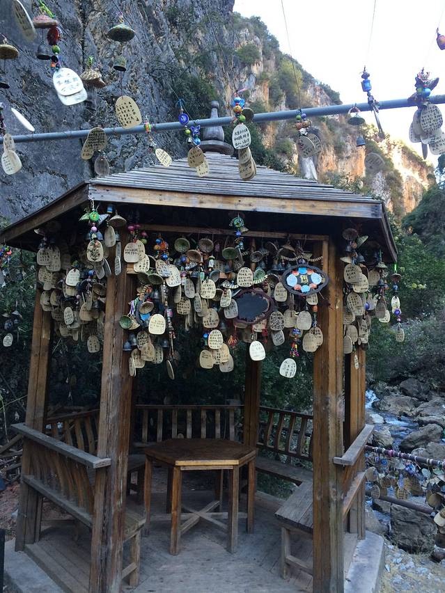 在客栈睡了一个懒觉,我的生物钟比较早,醒了在床上赖着,10点多挣扎起床,到楼下的小院子坐了一会儿,出去古镇转了一下,古镇还未苏醒,冷清的街道很适合我一个人溜达,11点半,师傅来接我们去他推荐的观音峡,这边应该是带游客到景点可以有提成,所以这个师傅一直鼓动我们去观音峡。这个景点如果有人愿意去的话,建议买一张50元的门票,还有一个电动滑车道(30元),不要买玻璃栈道还有那个旱滑道,因为太小儿科了。这个景点外面很多人造景观,可以坐电动滑车,感受一下在峡谷穿越,下车之后就来到了观音峡瀑布,这里有很多许愿签,风一经过,叮叮咚咚甚是好听,人们的心愿如此美好。