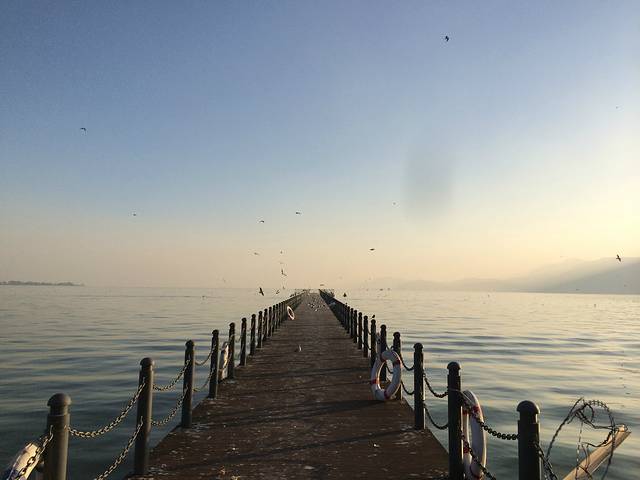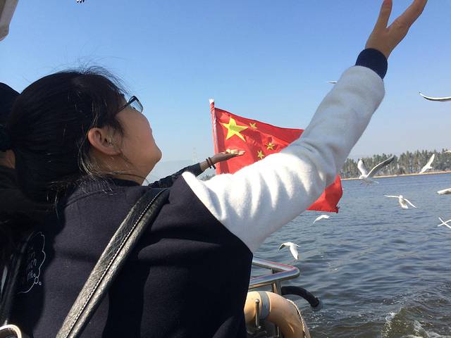饭饱之后,我俩拦了一辆车(车费约35元)去昆明著名的海埂大坝也就是滇池去看海鸥,海埂大坝附近绝对是昆明的富人区,很多独立院落的别墅,由于非旅游旺季人不是很多,但是也有很多昆明人在这边休闲,昆明的阳光很好,在阳光底下很暖和,但是没有阳光的地方分分钟让你穿上衣服的节奏,海埂大坝上有游船,80元/人,我们买了10元钱面包,用于喂海鸥,在船上我俩笑的跟孩子似的,章小宝直说还是要出来搞旅游哇!游船大概半个小时,远眺,真是秋水共长天一色,落霞与孤鹜齐飞,中午没有落霞,湖面上薄雾皑皑,海鸥追逐着我们步伐,真是一种享受!