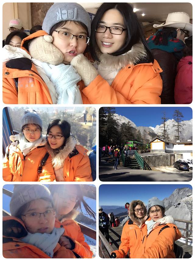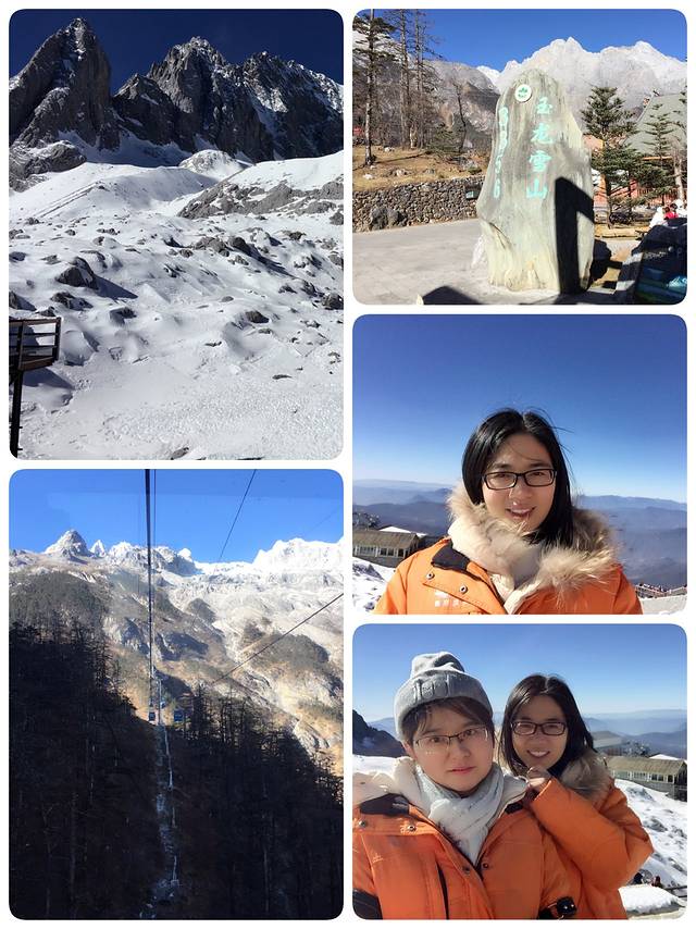 本来约了师傅7:30分从客栈出发,但是师傅一早接机没有赶到,推迟到8点多,吃完早饭,赶到玉龙雪山已经9点多,这个地方比较复杂,买索道票和环保车票(一定要买不然你上不去的,200元/人)在去往玉龙雪山路上的中间段设的一个售票点,很不合理,如果不是这个本地师傅带我们,根本不知道怎么弄,买完索道票和环保车票,开了10分钟到了玉龙雪山门口,门票130元/人。索道票是每半个小时一拨人,建议早一点出发,这样可以买到早一点的票,不然在山下要排很久的队,玉龙雪山上主要交通工具就是环保车,可以带你到山上各个景点转悠,索道票就是带你到那个雪山上。记得在山下要租羽绒服,自己的衣服根本扛不住,脚上贴暖宝宝,建议买个氧气,应该有一点帮助,我俩在山上说句话都费力的时候就是这么想的。先坐环保车排队,到了半山腰,然后坐索道排队,索道门口有人买巧克力或者牦牛肉,如果你没有提前准备,建议买一点,不然山上真的体能不够,买了就吃,我留了一半,对于我能平安下山起到了巨大的作用。