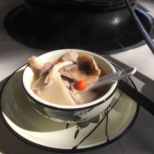 刚巧师傅把我们带到的是关上美食一条街,最终选择了一家19年的老店,京川野生菌火锅,点了鸡汤锅,三个菌,三个小菜,一份肥牛(完全没吃,建议不要点肉,两个人点6个就可以了),不同菌不同价格,最贵的松茸菌(148元一份,一份2两,我俩没点,待土豪朋友们吃了来分享),我俩最后吃了240多,用大众点评买单,打8.8折,220元,吃的很饱,菌子也很鲜,他们说七月份之前的最好吃。