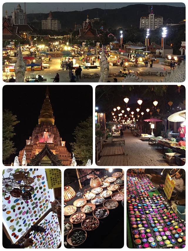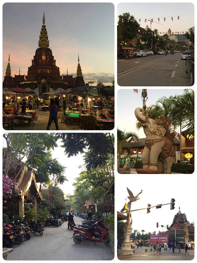 吃完晚饭,我俩在西双告庄转悠,有大金塔,这是一个特别有热带少数民族风情的街道,很多大象孔雀的街灯,很多小摊小贩,灯光柔和,很舒适的逛逛,随便买点小玩意,也很满足。烧烤很好吃的样子,但是晚上俩吃太多,完成无法吃下去,不然大快朵颐该多爽!