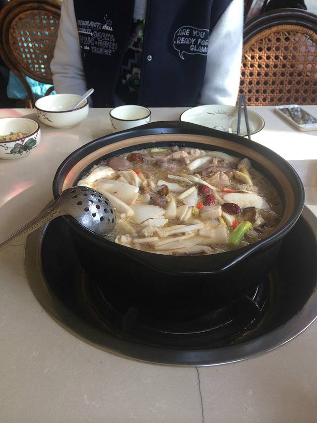 第二天在床上赖了很久,差不多11点多才收拾完毕从酒店出来,第一站当然是现喂饱两个小饿宝。我们将行李寄存在酒店前台,然后打了车,本来要去吃大众点评上的滇菌王(野生菌火锅是这边著名美食),上车之后就跟师傅一直聊,师傅说推荐我们去吃一家老字号,于是跟着师傅去了,但是一下车便深深怀疑师傅跟商家串通好了,店面很偏僻也很小,也无人就餐。我们一到店员积极的迎来,还好机智如我们,赶紧撤离。