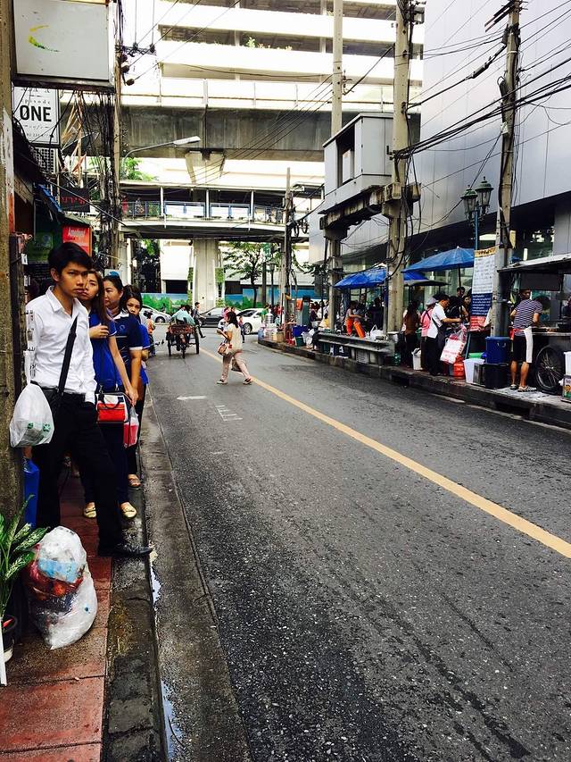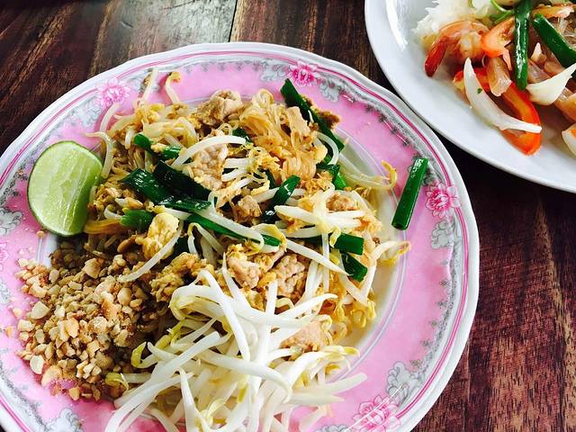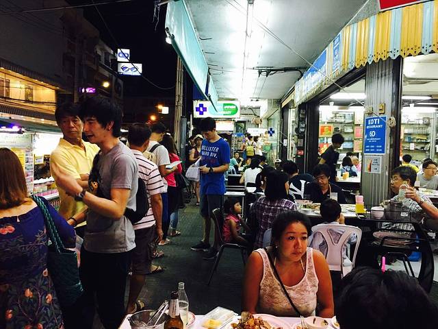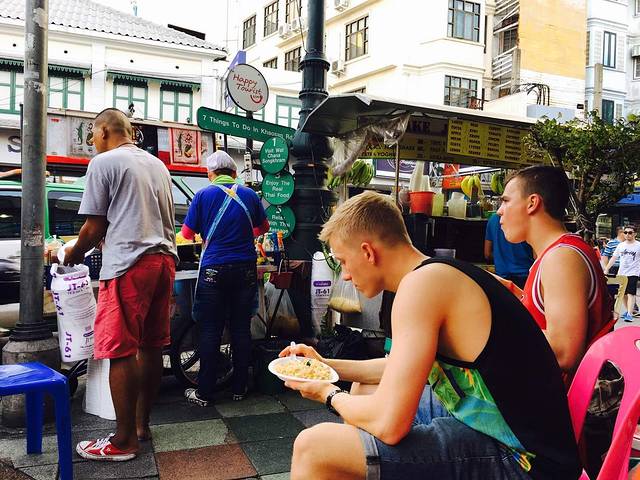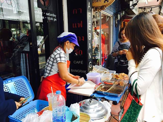 无论你来自世界的哪里,来到这,都只能像这样乖乖的坐在路边,手捧着吃pad thai。