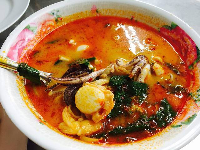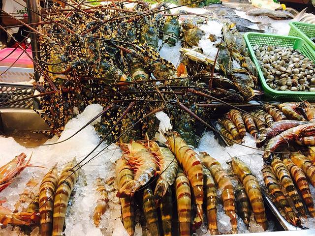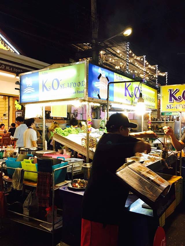 夜市里最热闹的当属各色的海鲜大排档,店家都会把自家海鲜摆在门口的冰块上,游客从门口经过,都会被个头夸张的大头虾、螃蟹和龙虾吸引,走不出多远便被俘虏了。入座,选了喜欢的海鲜后,和老板协商好海鲜的做法,最正宗最地道的泰式海鲜马上出炉