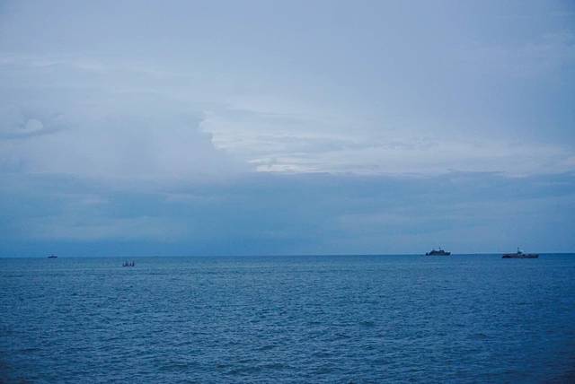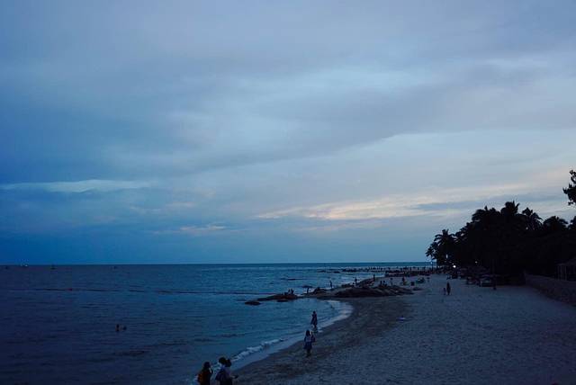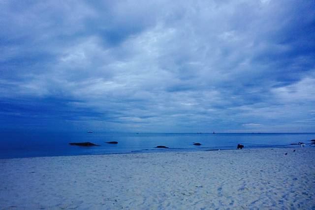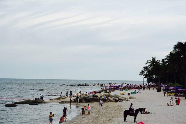 一早一晚都来海滩走走,天气不太好,看起来灰蒙蒙的,但是在海边游玩的人不少。