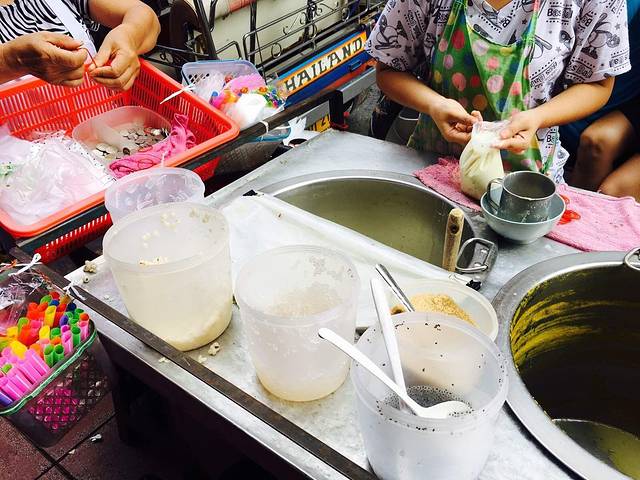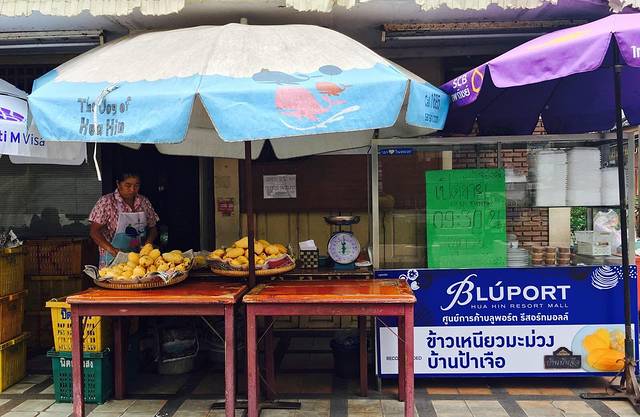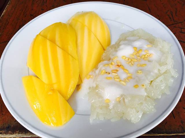 网红的芒果糯米饭,就在离海边不愿的希尔顿酒店正门对面。130泰铢一份,略贵,比攻略上的价格上涨了许多。其实泰国任意吃到的芒果糯米饭都很好吃,这家网红当然也不逊色,只是性价比略低了一些。