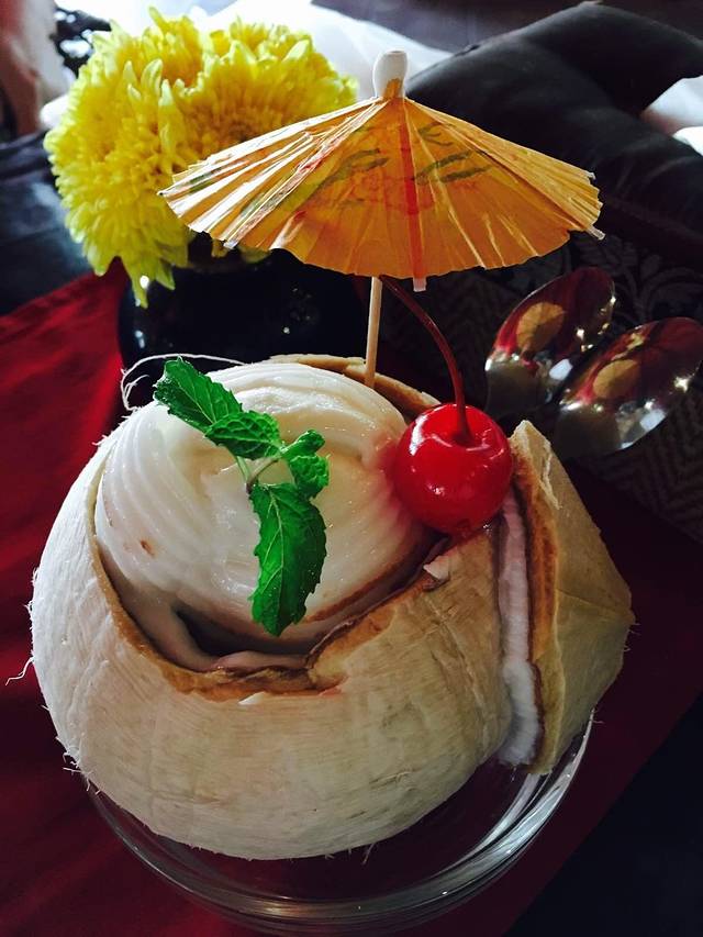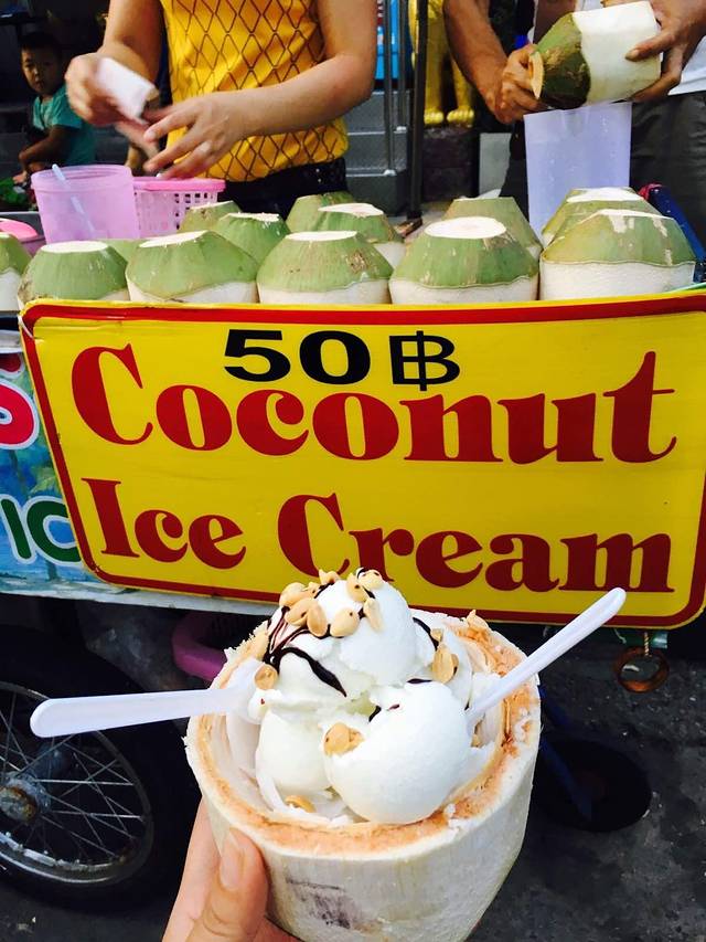 攻略上推荐的一家泰式餐厅hot chilli,因为吃过了午饭,就只是尝了招牌的椰子冰激凌,相当于人民币20元,在当地算价格不低了。里面有俩冰激凌球,奶味相当浓郁,吃完还可以用勺子舀椰壳内层的椰肉吃,20元还是很值的。