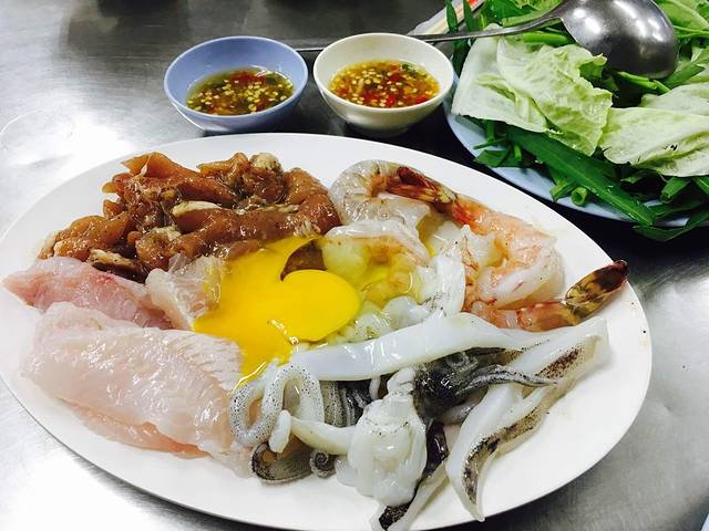 我们点的是混合,汤底为清汤,海鲜十分新鲜,虾很大很有嚼劲,鱼片非常嫩。猪肉经过腌制后,非常嫩,没有肉腥气,还有一股五香粉的淡淡香气,再配上正盛独特的蘸料,真的好吃。