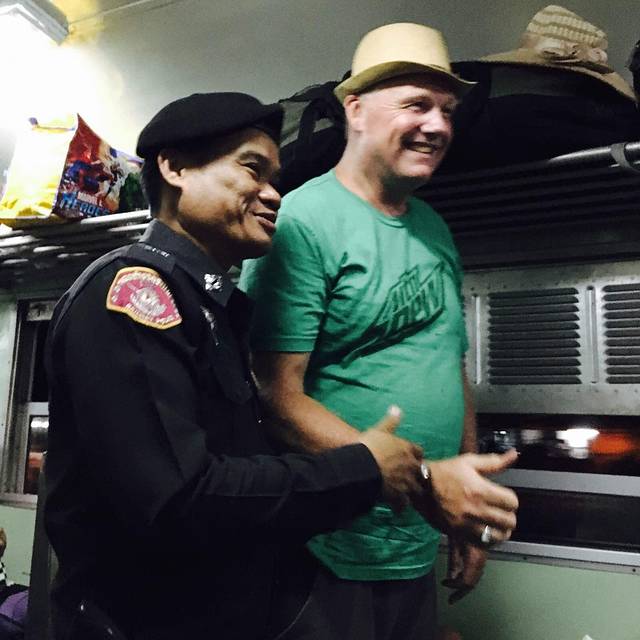 这位火车乘警可能是难得见老外乘坐,热情的招呼老外合影。