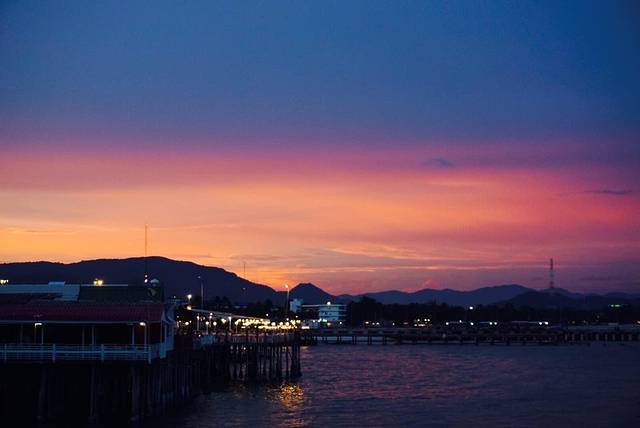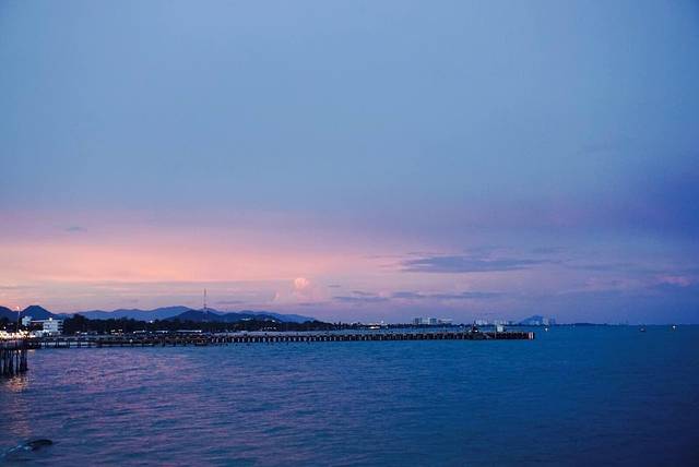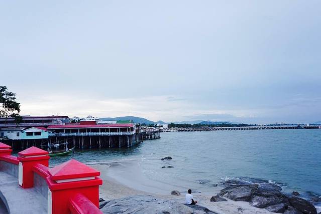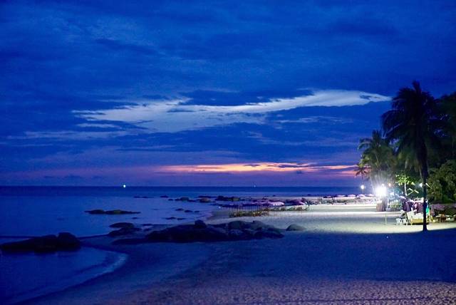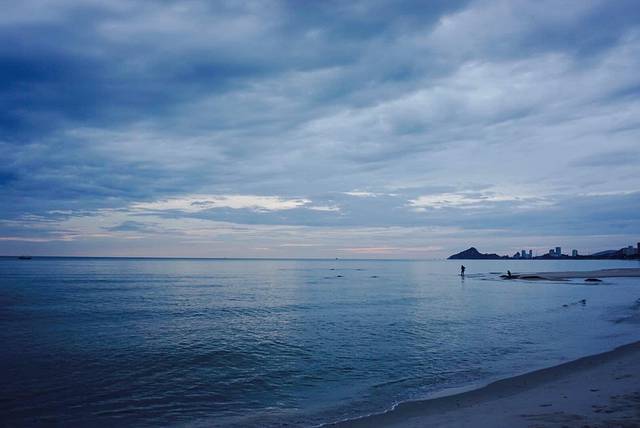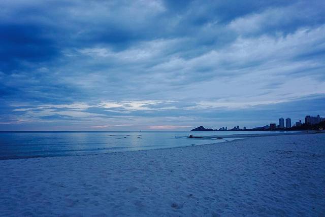 华欣海滩靠东边,一大早来碰碰运气看能不能看到日出。