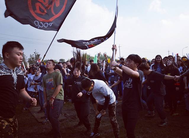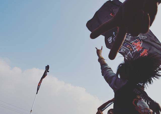 摇旗的是一个女生 641主唱特别关照的说 举旗是个女生 保护好她 好吗!