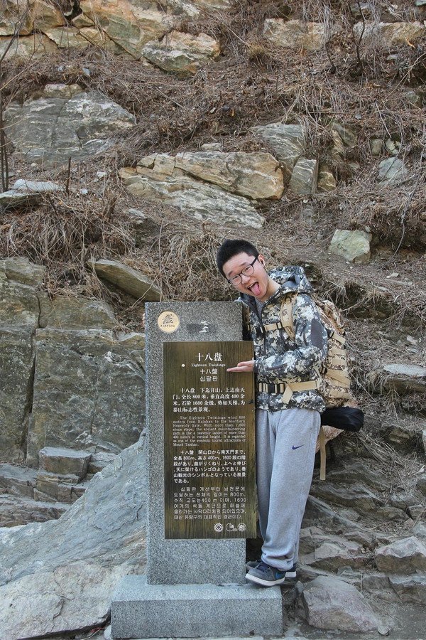 一点一点接近,也越来越兴奋,十八盘看起来可能并没有那么凶险,但仅有八百余米的距离垂直高度就有400米,1600多级台阶宛如天梯一般。真是泰山之雄伟,尽在十八盘,泰山之壮丽,尽在攀登中。