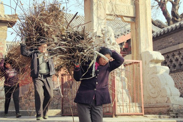 老乡们肩扛着柴火正从一天门出来,我不知道他们是从什么地方拾得的柴火,是否如泰山挑夫那样往来于一天门和南天门之间。