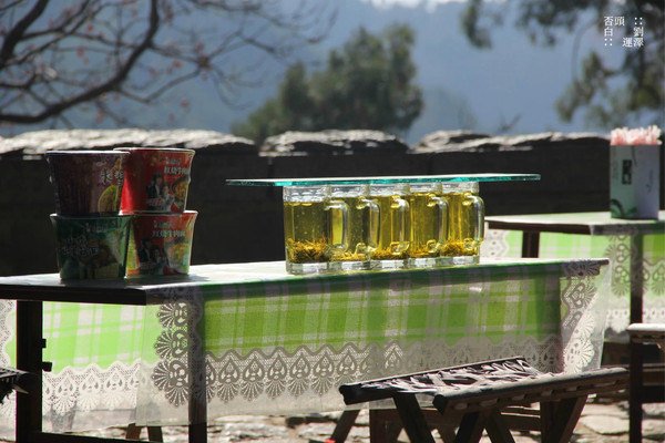 沿途上很多沏好的茶水供登山者购买饮用,当然少不了国内所有景区必备之神一样的食品---方便面。