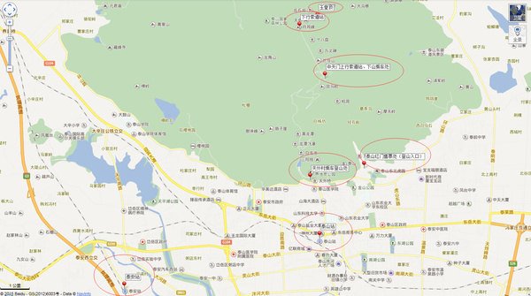 泰山有两条线路可登顶:第一,走步道攀登,从红门入口处开始。第二,在天外村入口处乘坐巴士然后在中天门转乘索道。