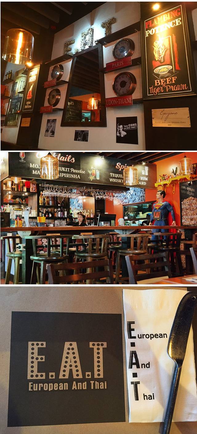 ↑E.A.T--推荐五颗星,全称:European And Thai,在普吉喝的最好喝的冬阴功汤就是这家了,江西冷牌子右边走进去就是
