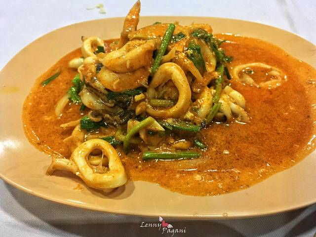 咖喱有点油,但是和青菜的搭配恰到好处,鱿鱼圈鲜嫩可口--90分