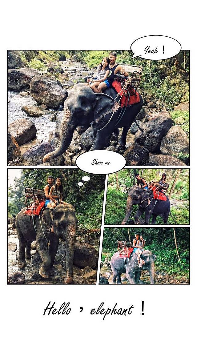 我们这一part,基本是上了大象之后,指导师就不见人了。哈哈哈哈他拿着手机给我们拍拍照,或者拍拍山涧小河,拍着拍着下雨了,自己跑回去遮雨了