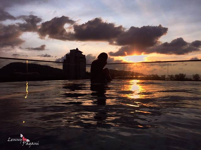 回到公寓游泳,和肥佬说还没认认真真看过一次日落呢