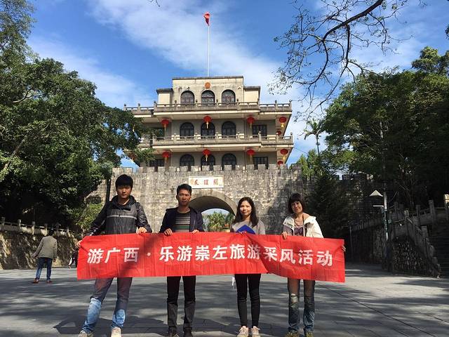 友谊关楼前合影。友谊关,设立于汉代,历史上曾称为镇南关,作为中越边境上最大、最重要的关防,是至今为止唯一仍在行使其职责的关口。