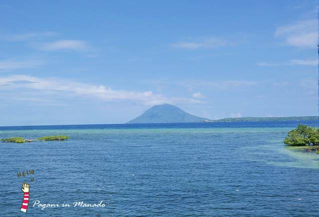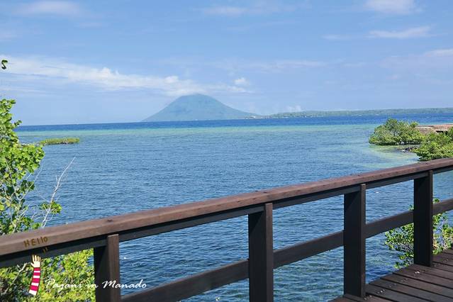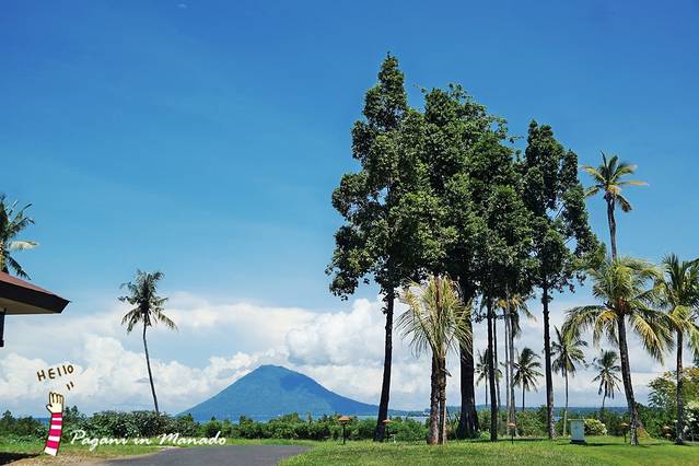 酒店180°环海 走到很多角落都能够看到 海的那边 有一座火山...