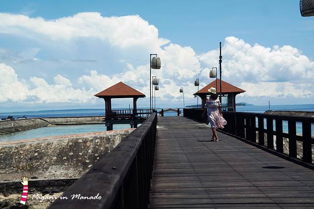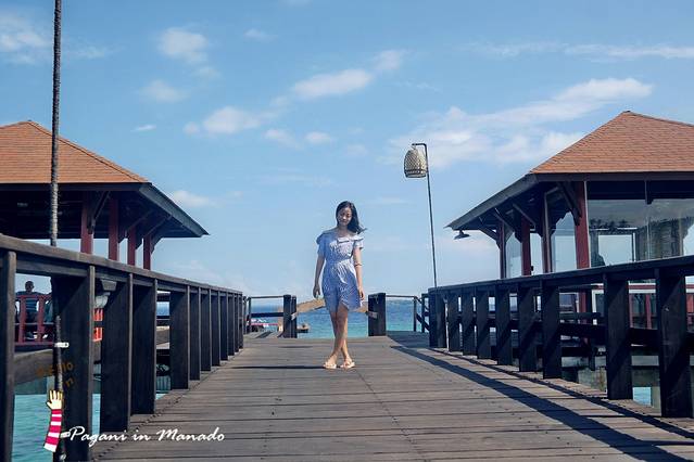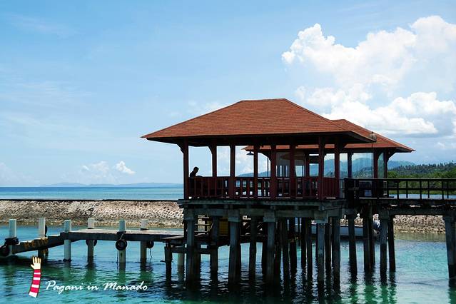 往这个方向直走穿过大堂就是泳池和私人码头 我们第二天的浮潜从码头出发