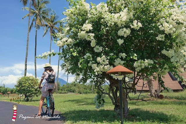 度假村很多绿色植被 前台可以免费租单车在酒店内骑行