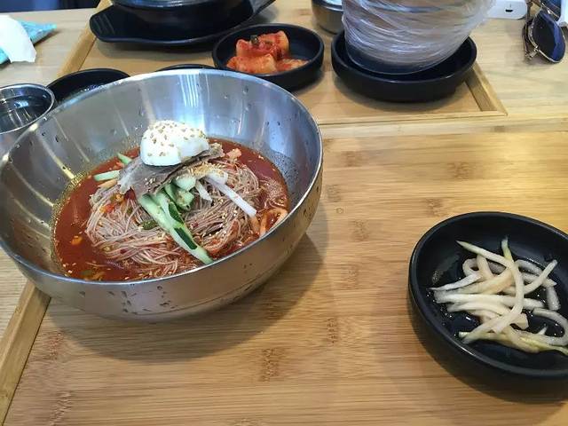 韩国冷面,真的是冷的,有点甜,但是真的把我辣到飞起...