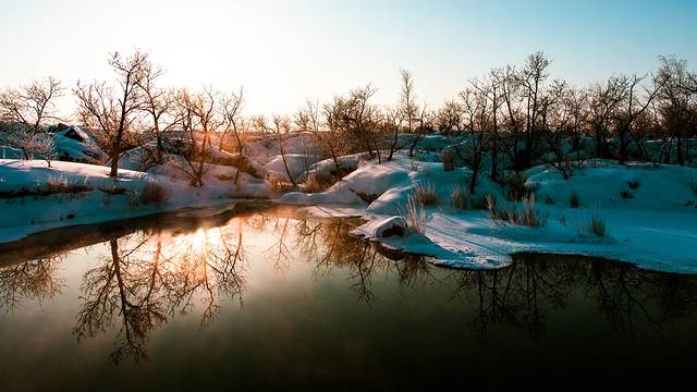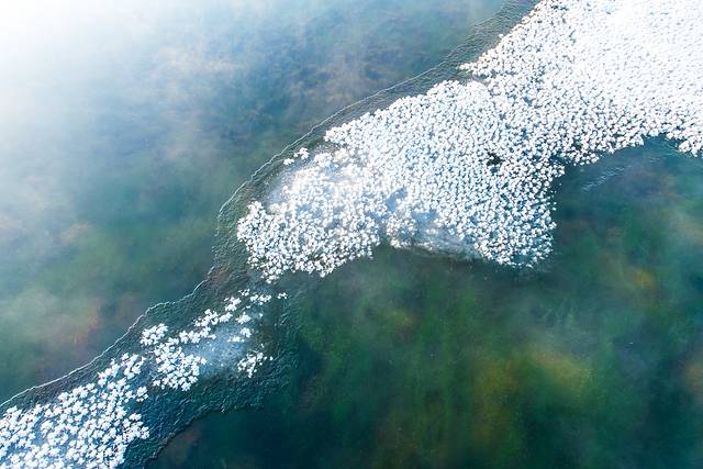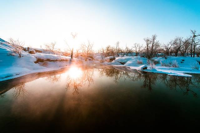 在北疆滴水成冰的寒冬,当气温下降到零下30-40摄氏度时,人们头上戴着皮帽子,身上穿着棉大衣,脖子上围着毛围巾,还觉得冷。但是,这个温泊却恰恰相反,水面波光粼粼,过冬的野鸭嬉戏于水中,自由自在,悠悠然,这些均可称之为北疆的奇中之奇。
