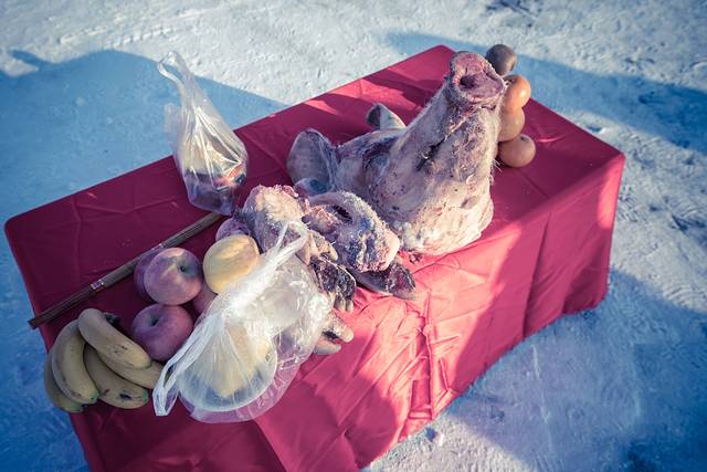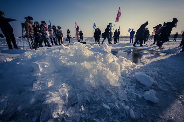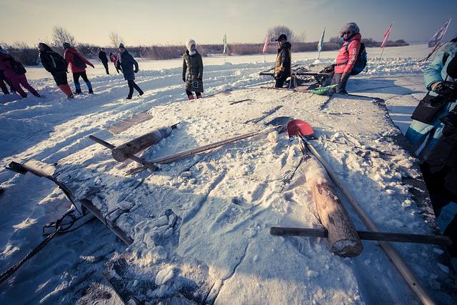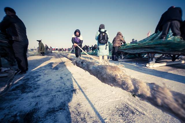 听当地的朋友讲,在五大连池的这些天是运气极好的,不仅赶上了特色而又盛大的冬季捕鱼活动,气温也回升了许多,否则冰天雪地里别说冬捕了,可能活动还没开始就已经冻透了!这天抵达的略晚没有赶上祭祀仪式,第一张照片可以感受一下。在起网之前还有许多的工作和各种工具参协助完成,看似简单的拉一张网(印象中是2000米的大网),在天寒地冻的东北也不那么简单,但也正因如此才更有观赏性和趣味性,你觉得呢