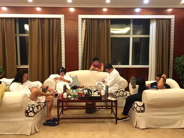 泡完温泉就马上在总统套房里开了个睡衣爬梯,结果大家都在手机修图发社交圈子。
