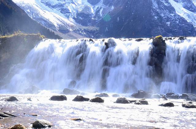 很喜欢这个瀑布;远景都拍了,流水像绸缎一样;水滴在石头上,绽出的水花,也感觉是美的