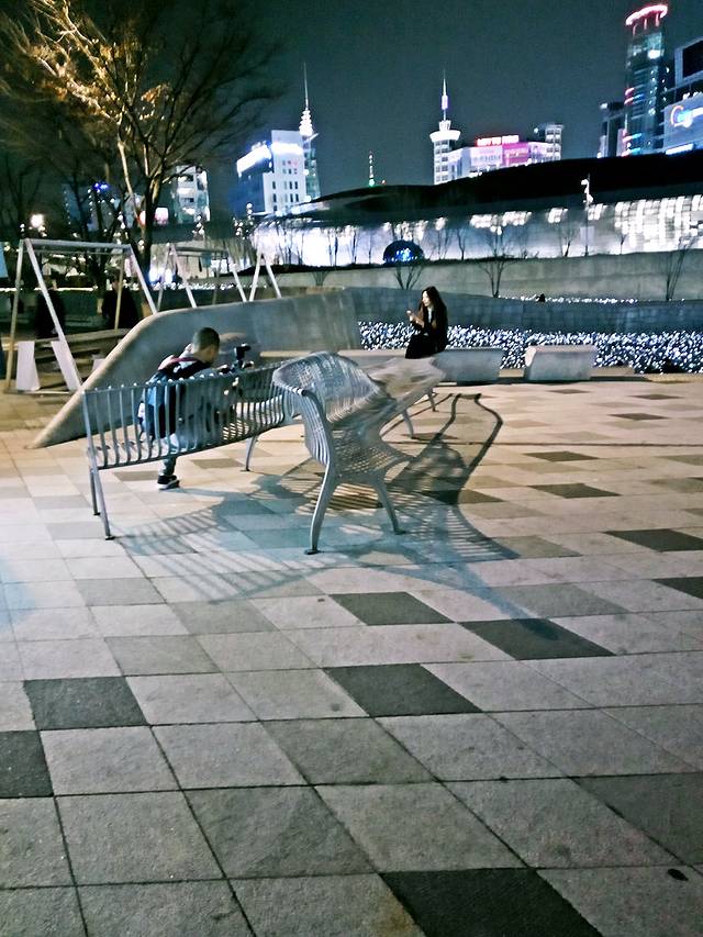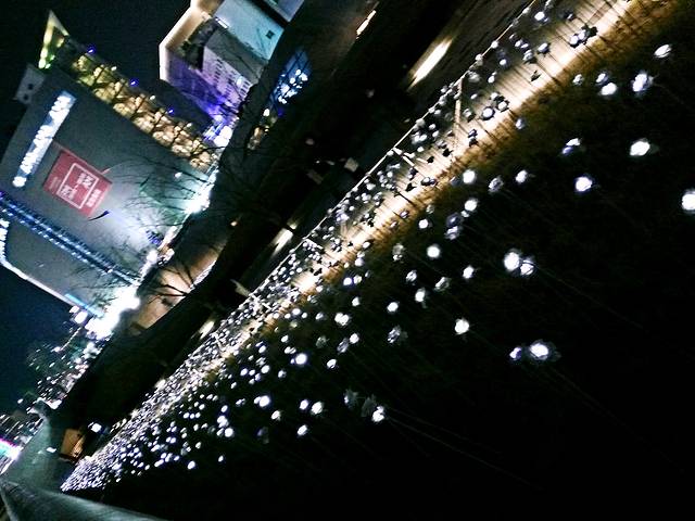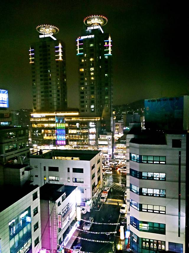那天晚上刚好有露天表演,全是20岁左右穿着短裙的韩国MM在热舞和唱歌。一条大街被韩语歌充斥着,十分热闹。也让一落地的我感受到了异国的文化氛围与气息。然而第二天带我妈再次经过时,少了音乐的街道变得寂静了许多。