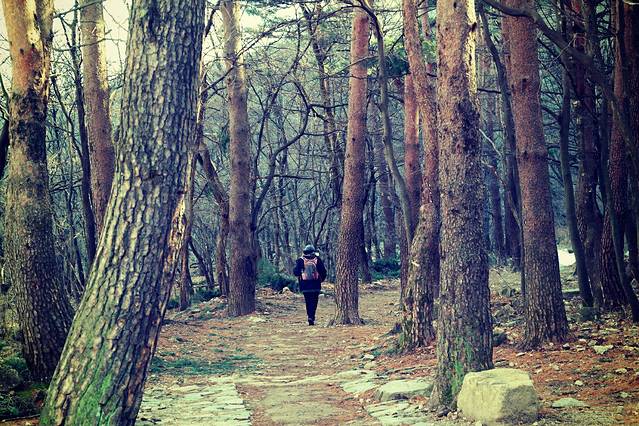 当我一个人走过五点的首尔大街,乘着最早一班大巴只为邂逅江原道束草,耳朵里徘徊着熟悉的旋律,看着大地慢慢苏醒,从黑色、紫色、蓝色渐变成金色阳光洒落我脸的那刻,我缓缓地闭上了眼睛,沐浴此刻只属于一个人的美好。/两个人可以是痛苦,一个人也可以是幸福/