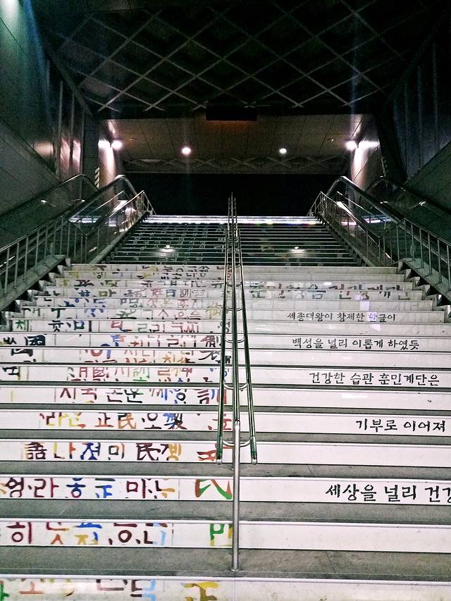 来到韩国,在地铁站里看不到人手一部苹果的景象,看不到满街的宝马奔驰和豪车。少了很多的攀比与跟风,多了几分诚恳与朴实。但我也想该诉你,我在下班高分期遇到了在深圳广州地铁从来没有过的拥挤,都快挤成肉饼了,进去不易,出来也难。韩国地铁站非常复杂,视韩文如佛文的我几乎没有一次做对过地铁,但也制造了机会让我和无数热心人儿人聊上了几句。人潮里不是长大衣便是羽绒服,连颜色都是同一个暗色调,简单便是一种时尚。开口闭口都是,欧泊瑟哟,阿尼哈瑟呦,康撒阿米达。喜欢这样有礼貌的国度。(在扶手电梯处,小公主一句一句地跟着妈妈重复韩文的你好,谢谢……我也清楚记得在电梯关门那一瞬间,一对漂亮情侣走进来的一个轻微鞠躬加点头和康撒阿米达—谢谢 )大街上随便一个都是韩剧里的男一女主,仿佛只要在东大门街上坐上一天,便算是看了一部韩剧。
