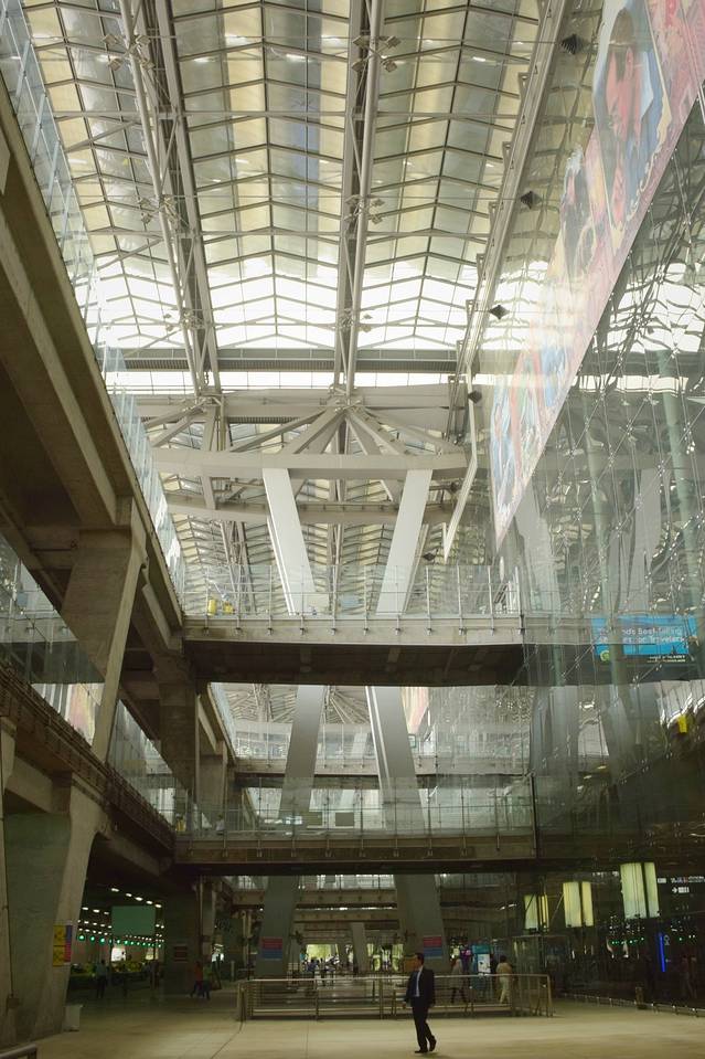 汽车到站后,出站就能看到天轨BTS。BTS都是自助购票,机器边有标明站牌和标价的图,只能使用硬币(可以去边上的人工窗口兑换,工作人员会问你几人到哪站不能多换硬币。。)。本想着之后几天在市区多选择BTS出行,现在就先熟悉下,哪知站内竟然没有自动扶梯,升降电梯也上了锁,我们拖着大小行李上下楼欲哭无泪~所以之后我们就都选择打车了,毕竟三人打车还相对划算些。到达Asok站,离入住还有些时间,正好边上是商场Terminal 21,就打算先去逛逛并解决午饭。这家商场顾名思义是航站楼主题,每层楼都设计为一个国家馆颇有特色。入驻的品牌也是较年轻化,应该是个适合拍照淘货的好地方,一层还恰好举办内衣折扣展销人气很旺。此处无照片,因为我们空着肚子无心闲逛,而且商场不给寄存行李差评!看到一家MK火锅果断冲进去填饱肚子再说。MK是连锁的泰式火锅,个人感觉一般,抛开食材不说蘸酱口味偏甜,总觉得还是我大川味火锅给力!值得推荐的就是他家自助点单系统了比较方便。。