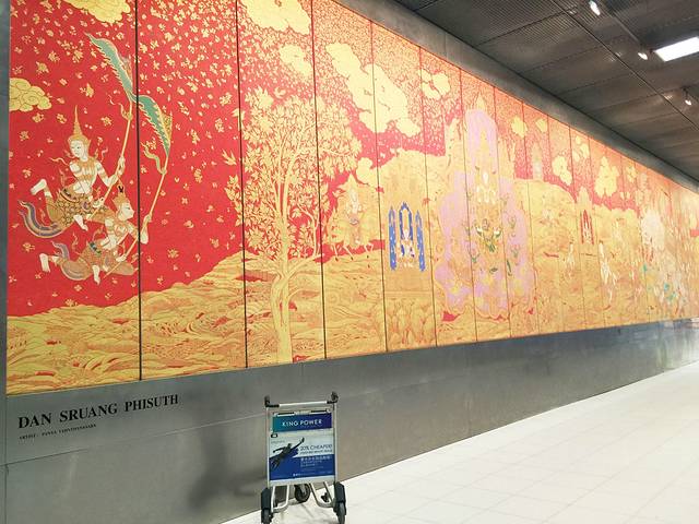 泰国风情的机场壁画,凌晨了托运的行李却迟迟未现身
