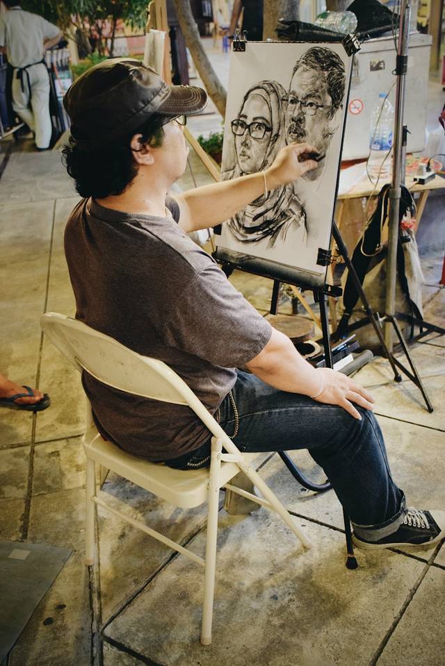 “左撇子”画家格外认真