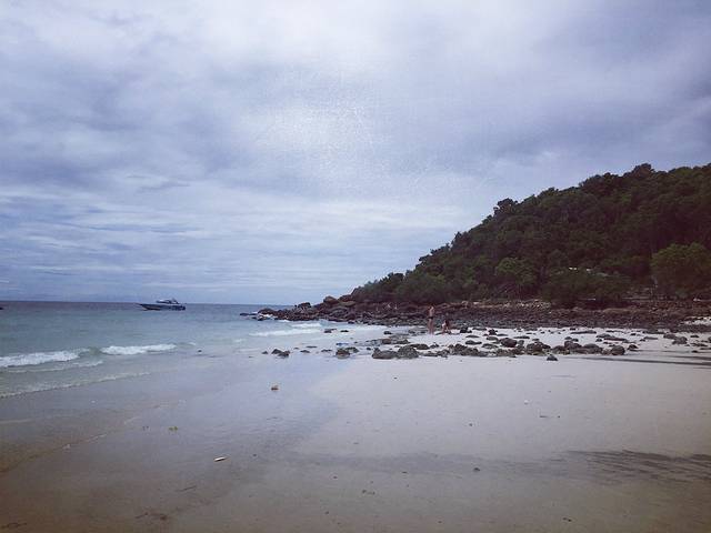 坐双条很快就到码头,领了浴巾和水。走上沙滩才发现,无论你是通过哪家旅社预订的行程,统统在一处集合,工作人员手上有当天所有上岛人员名单,集体分配快艇出海,所以场面是有点小混乱啦。轮到我们上船,快艇离岸边有些距离,需要淌水过去。还没出海就已湿身,穿人字拖的朋友尤其要小心别把鞋搞丢啦。