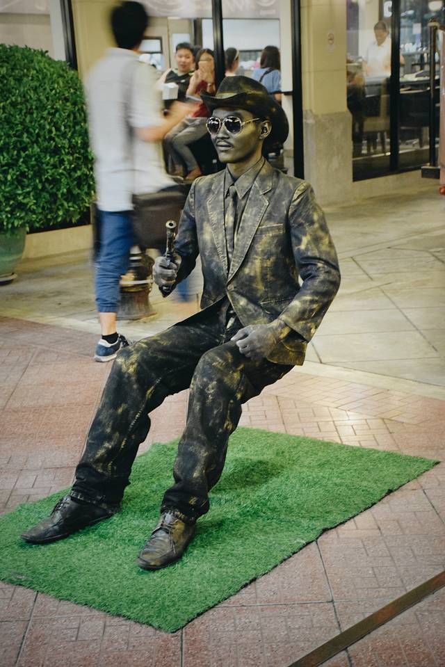 街头艺人因为路人的啧啧称奇而暗自得意