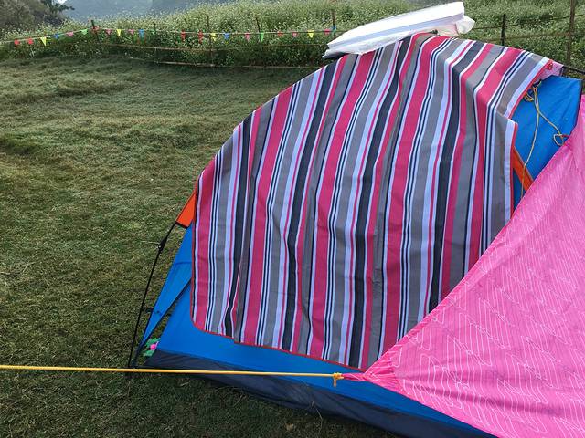帐篷外就是绿色,满眼露水,特别诗情画意....