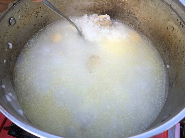 鸡肉粥煮鸡蛋,却因为纯野外而更美味!一切都在太阳的照耀下变的清晰而又温暖,新的一天又开始了