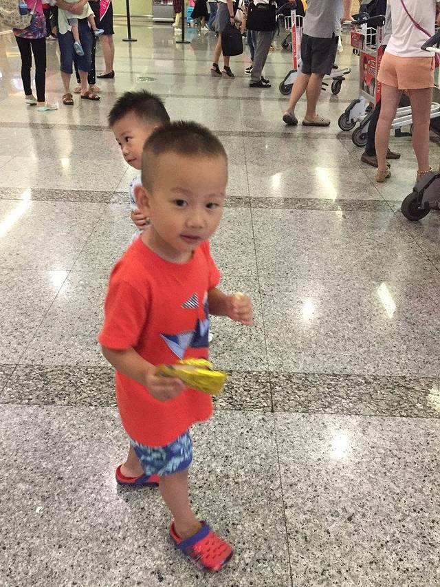 第二天早晨,吃好早点,打了个滴滴,前往飞机场,一家伙们看到飞机很兴奋,杉杉第二次坐飞机也很兴奋,因为