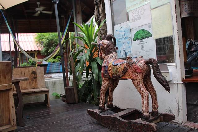 深绿色的钢架,老旧的木板,你肯定会觉得它不起眼,但装饰了一些有趣的元素,拍出来的照片很不错!在度假村摘了鸡蛋花,事实证明带着鸡蛋花拍照还挺好看的!