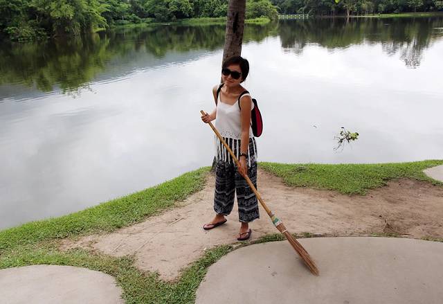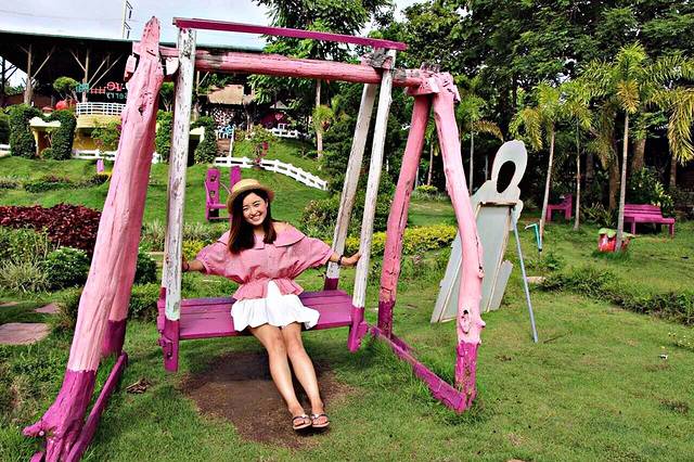 面前这平静的人工湖叫作ANG KAEW(安娇),传说两位相爱的人来到湖边,若把戒指一起扔进湖中,会相爱永远的。要是会游泳想下去捞戒指!