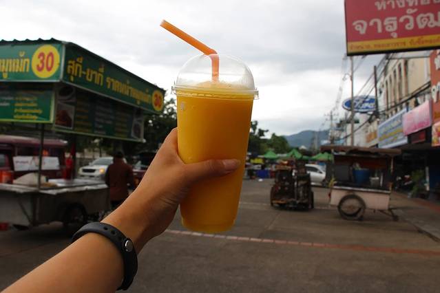这个沙冰是我的最爱,没有之一,一次两杯都不嫌多,一杯30泰铢、鲜果榨的,好喝的不要不要的。