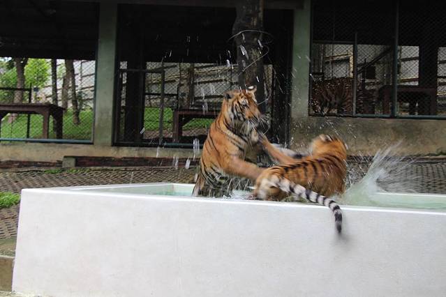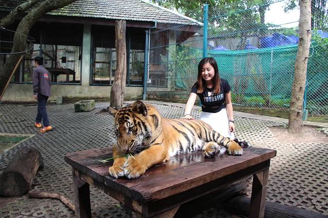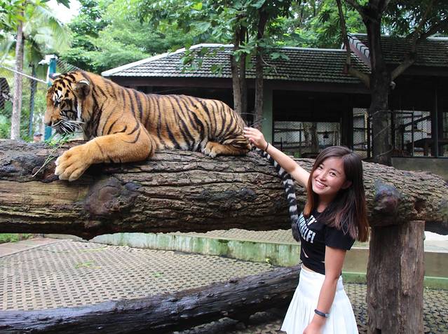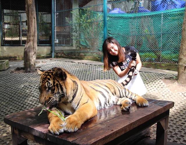 记得不要让老虎舔你,也不要去触碰他们的头部,不要正对老虎头部,不要与老虎对视,拍照的时候不要使用闪光灯。