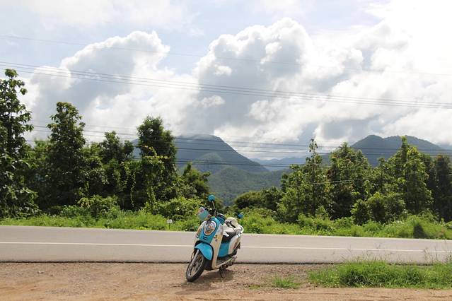 到达拜县后马上买了第二天中午回清迈的车票,在车站旁边租了摩托车,骑着摩托车去住宿的地方。
